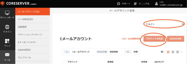 【05】〇〇でもできる!写真アルバム・ギャラリーサイトの作り方 2021.02.062021.02.15読み上げ開始読み上げ停止5. 取得したドメインのメルアドを作成します取得したドメインのメルアドを作成しておくといいでしょう。今度はコントロールパネルのメニュー「メール」の「メールアカウント設定」を開きます。右上の「ドメイン」が作成したいものになっているか確認して、「アカウントを作成」を押します。表示されたフォームに入力して「アカウントを作成」を押すとメルアドができます。作成されたメルアドで送受信するには、登録完了のお知らせのメールに記されている「POPサーバー」「SMTPサーバー」を、メールソフトで設定します。